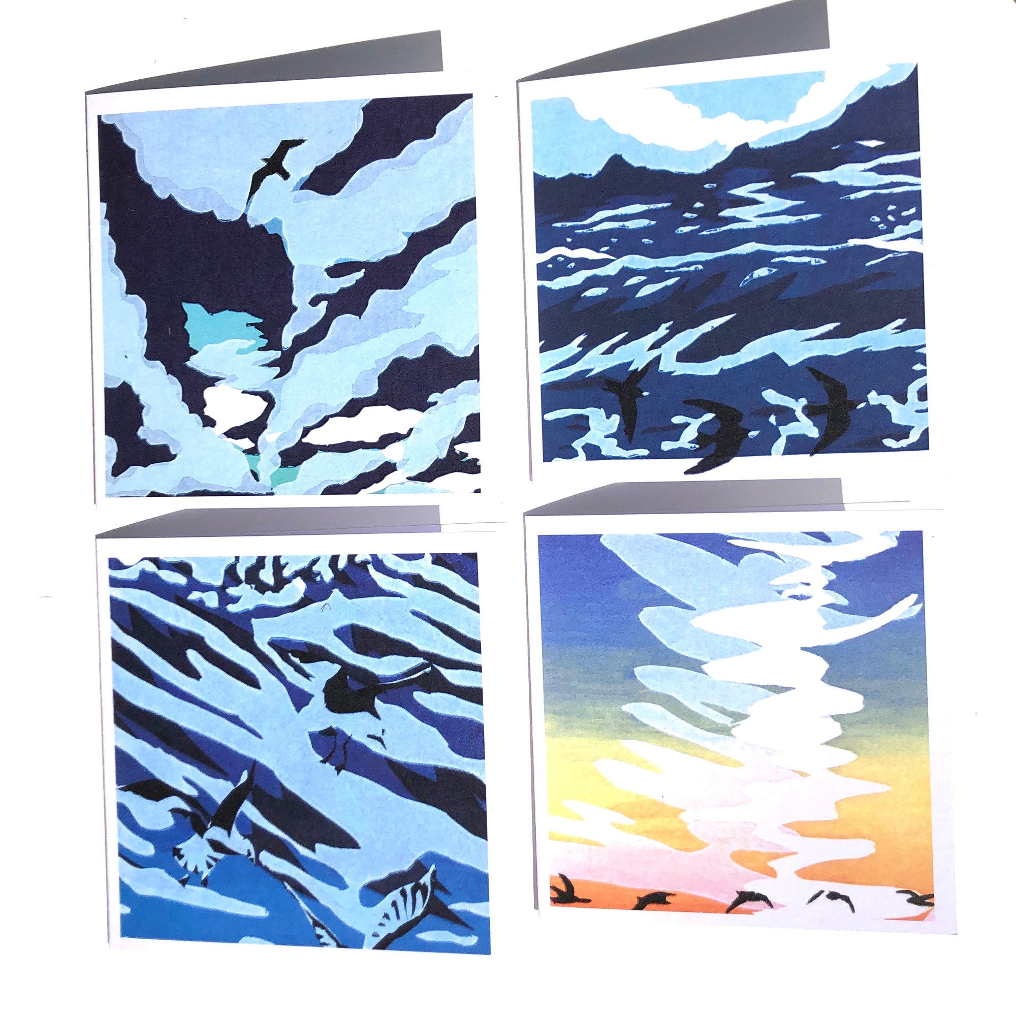 A set of four seaside bird cards, ready to fly to anyone for any occasion.