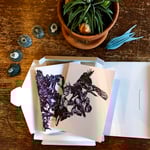Digital reproductions of hand drawn artwork, recycled A6 white card with recycled brown paper envelopes.