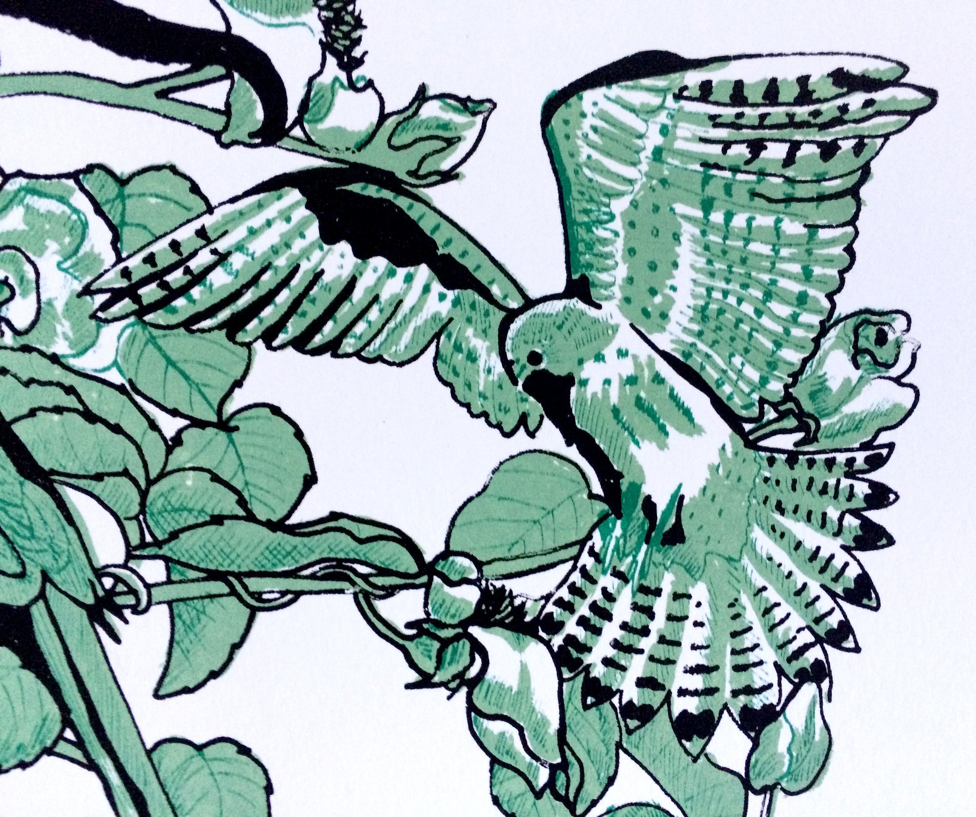 Hunter and hunted, flowers and weeds, natural and domestic. This screen print is a reworking of a Rorschach ink block test focusing on the idea of nature and nurture.