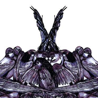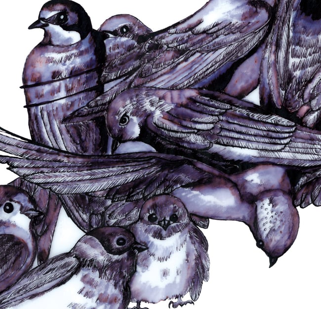Using the old Rorschach ink blot psychological tests as a my inspiration, I wanted to show how these tests were misleading by filling the shape with images that reference the natural world and lifecycles, with the swallow over watched by a well hidden sparrow hawk.