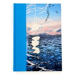 Hand pulled screen printed A5 notebook, hardback recycled card cover and bound with blue material.