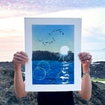 Limited edition print run of 10 prints on fabriano high quality artists paper - Hand drawn artwork and hand screen printed. Prints will vary due to the hand made nature of the screen print and the gradient effect on the background.